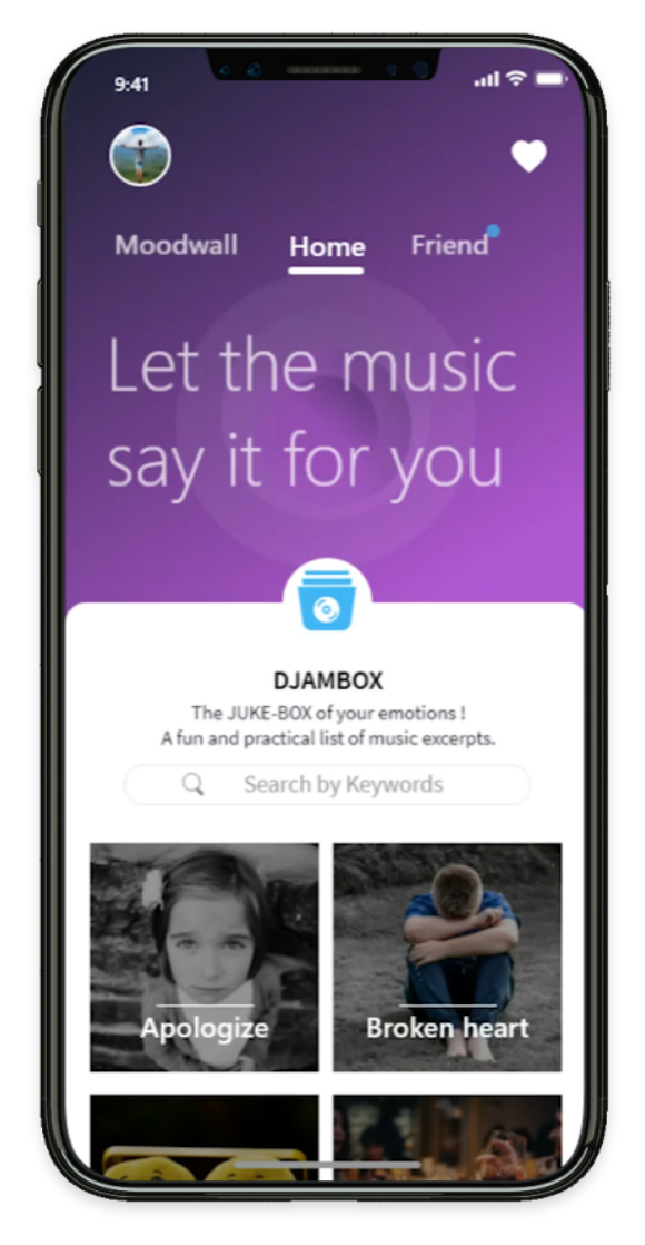 Djamm est le premier réseau social qui vous permet de partager ce que vous avez en tête avec vos amis à travers des extraits de chansons existantes qui le disent parfaitement pour vous.